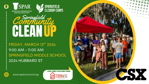 The Springfield Cleanup Corps, a program of Springfield Preservation and Revitalization in partnership with the City of Jacksonville, hosts 12-15 Community Cleanup events each year to beautify our neighborhood. One of the best ways to support our work is to volunteer at a Community Cleanup. We will pick up trash along sidewalks and city right of ways in a designated portion of the Springfield Historic District. We provide gloves, trash bags, and garbage pickers for your convenience.