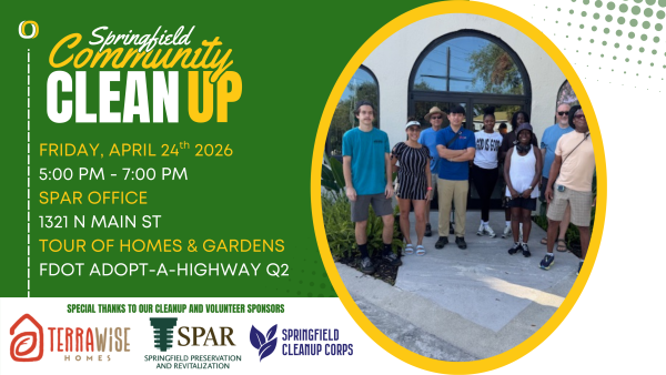 The Springfield Cleanup Corps, a program of Springfield Preservation and Revitalization in partnership with the City of Jacksonville, hosts 12-15 Community Cleanup events each year to beautify our neighborhood. One of the best ways to support our work is to volunteer at a Community Cleanup. We will pick up trash along sidewalks and city right of ways in a designated portion of the Springfield Historic District. We provide gloves, trash bags, and garbage pickers for your convenience.